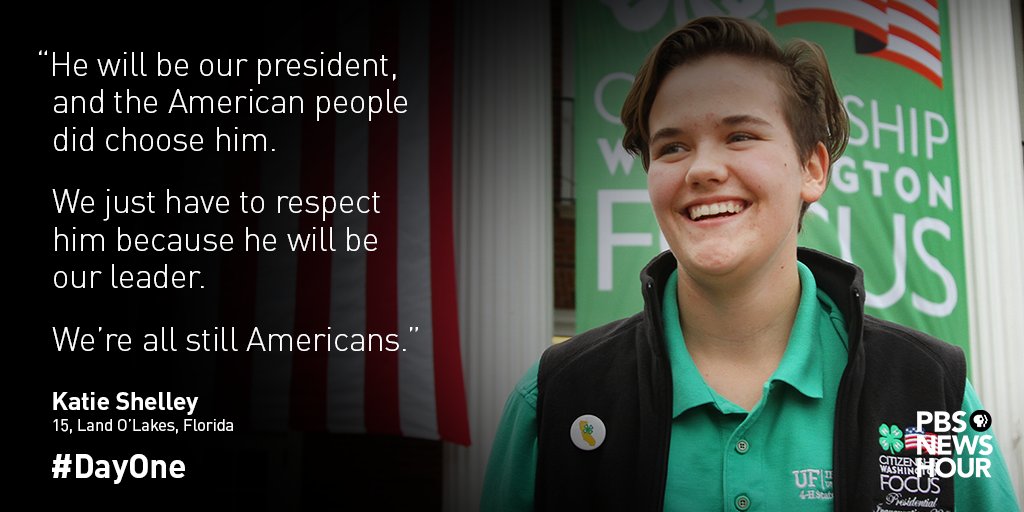 - 15-year-old Katie Shelley spent 18 hours in a charter bus w/ 50 4H high school students traveling to DC for #DayOne http://to.pbs.org/2k9YTfC